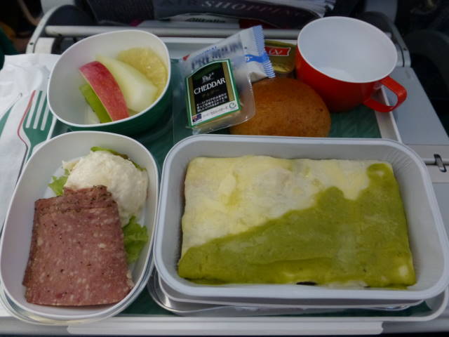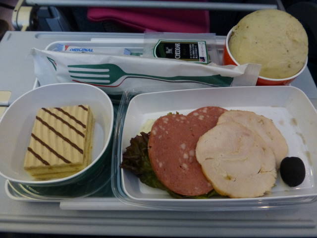 食事は離陸後2種類から選択、着陸前にも軽食が出ました。