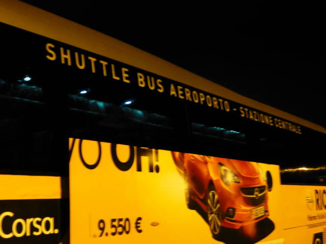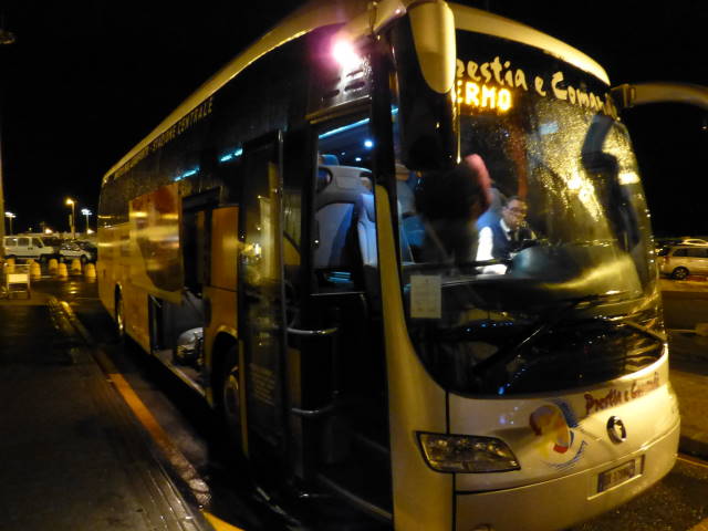 料金は6.3EUR。23:00発のバスは定刻に出発、渋滞なしで23:30にポリテアーマ劇場(Teatro Politeama)に到着。