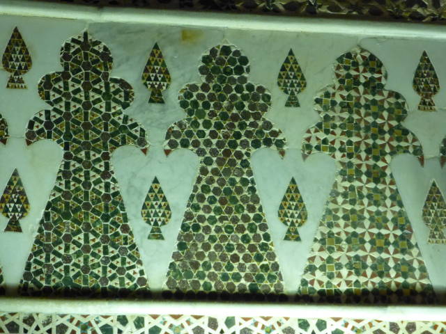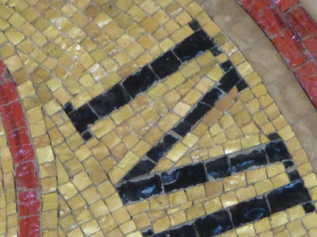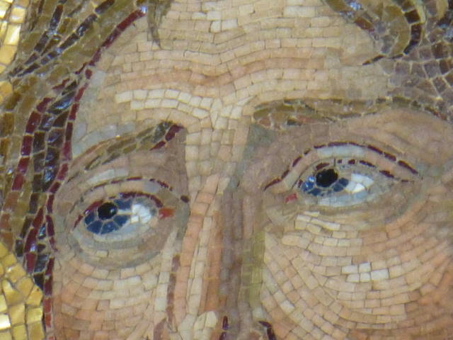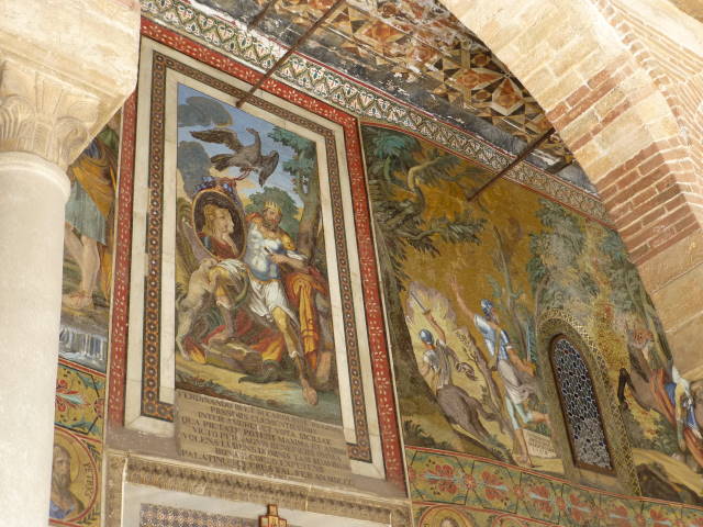 中庭に面して左側の壁面に施されたモザイク画。凄い!