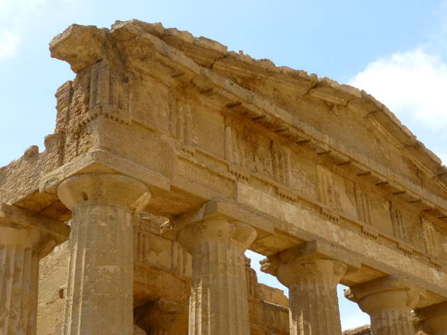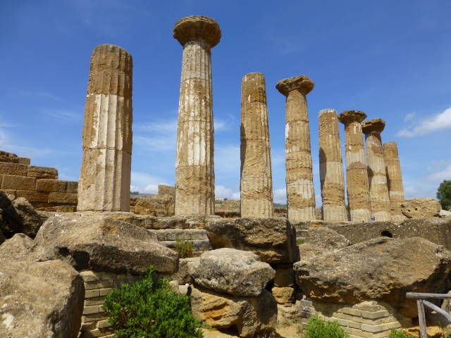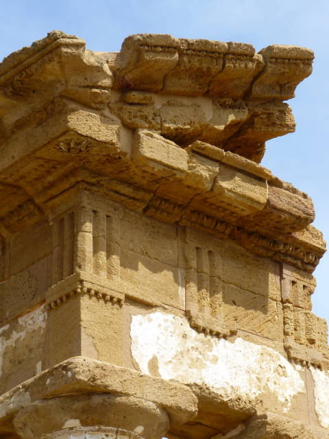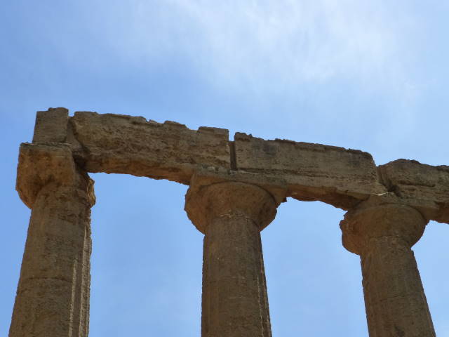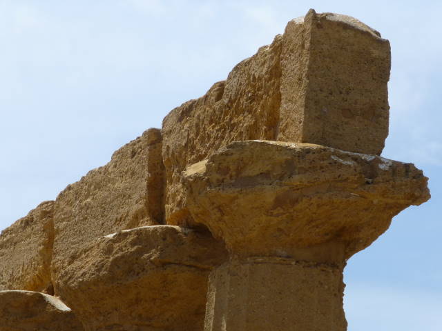 紀元前460年〜440年にカルタゴの侵攻により炎上、更に中世の地震により倒壊。現在は25本の柱とアーキトレーヴ(柱の上の横材)の一部が残っています。