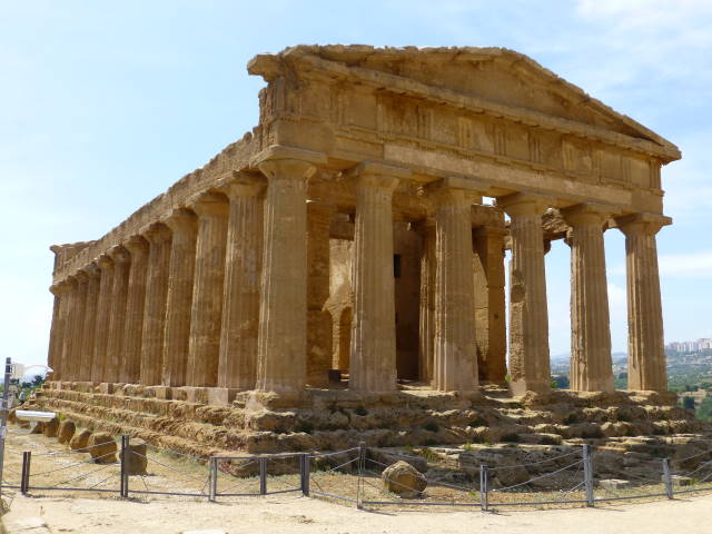 大きく開けた丘の上に建つコンコルディア神殿(Tempio della Concordia)。