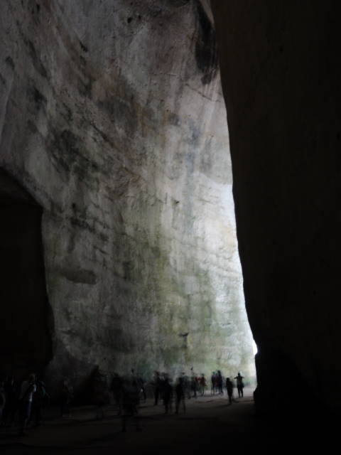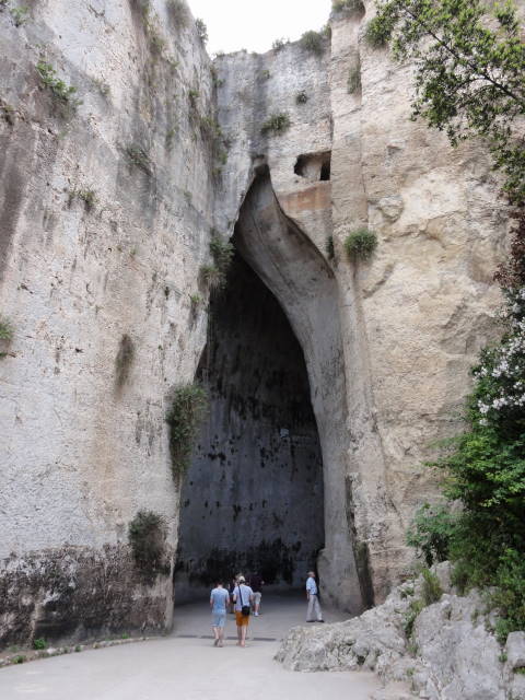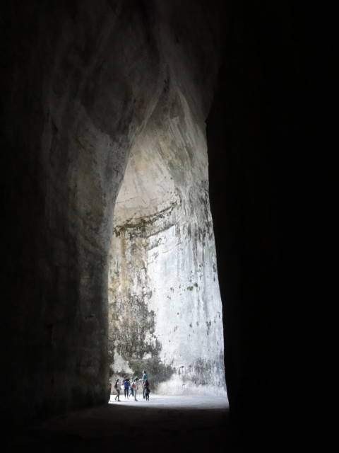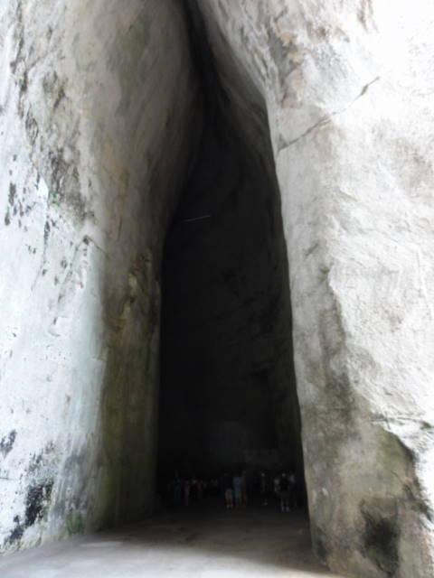 天国の石切り場(Latomia del Paradiso)の中で最も有名な、高さ36mの細長い耳の形をしたディオニュシオスの耳(Orecchio di Dionisio)と呼ばれる洞窟。音響効果が優れていることでも有名。