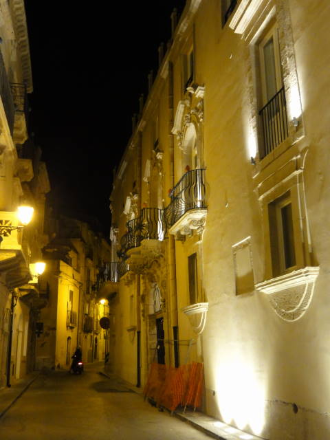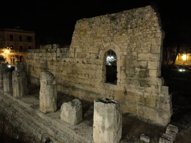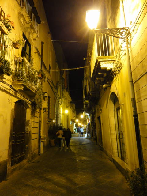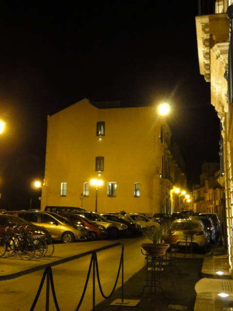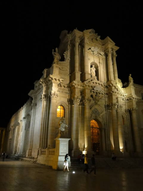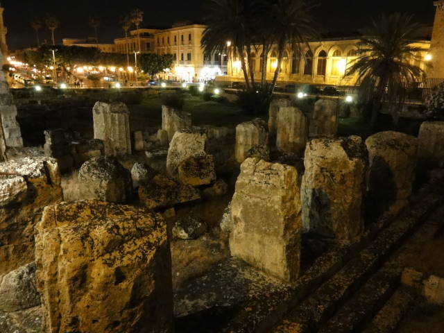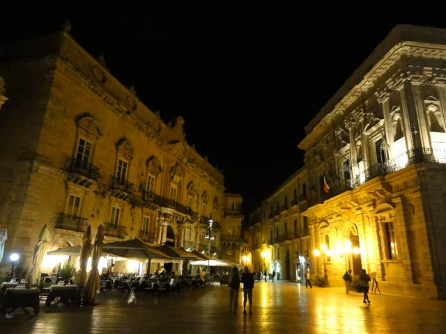 アルキメデス広場を通って、夜のオルティージャ島を散歩。