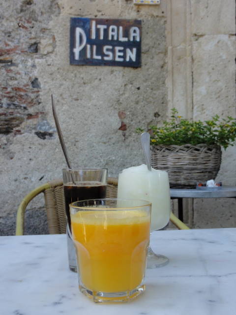 ここは映画ゴッドファーザー(The Godfather)PartT」の中で、アポローニャの父親が経営するバールとして登場。明日の現地ツアーでも訪れる予定ですが、どうしてもアル・パチーノ(Al Pacino)演じるマイケルが座ったのと同じ場所に座りたくてやって来た次第。ちょうど空席だったので、冷たい飲み物で喉を潤すことに。