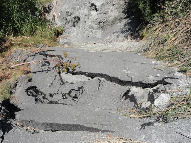 ナント崖崩れで道が崩落してましたが、ここまで来て諦めるわけにはいかないので、よじ登って突破。