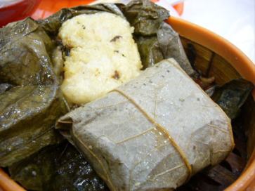 右:豚肉入り小龍包。 写真手前の生姜と酢をつけていただく。 |