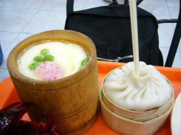 効いていない。★ 右:龍包の中に入っているスープを ストローを使って飲む。ぬるいのが 難点。★★ |