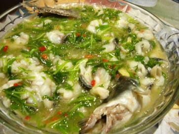 ぶつ切りにしたウナギを一匹使った 料理。味は淡白で白身魚のような食感。 右下に口を開けた頭、左上に尻尾が 入っているのがお分かり頂けるかな? ★★★ |