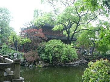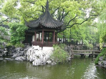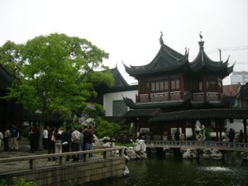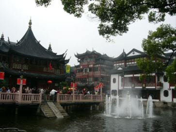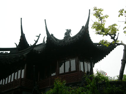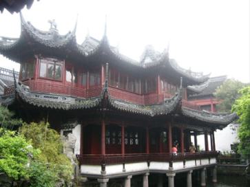 「湖心亭」。中は喫茶店になっている。 右の建物が「南翔饅頭店」。 |