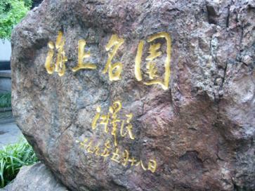 江沢民国家首席(当時)がこの地を 訪れた記念に建てられた。 |