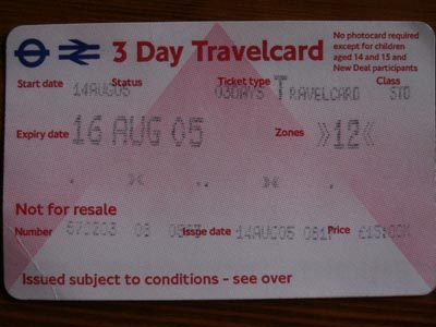 3日間有効のトラベルカードを購入。ゾーン1と2の地下鉄や路線バスなどが乗り放題で、