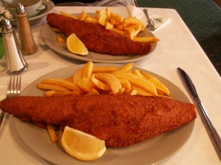 白身魚のフライの大きさもポテトの量も半端ではない。イギリスでは4人に1人が