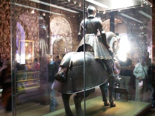 武器展示室。人間だけではなく、馬にも甲冑が装具されている。