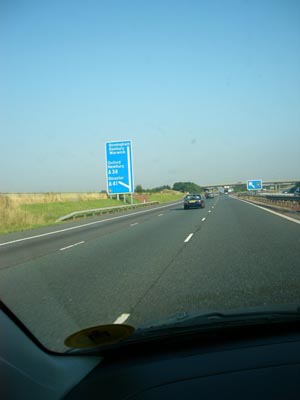 7時にホテルを出発し、高速に乗って北へ向かう。嬉しいことに、イギリスの 高速道路は、ほんの一部区間を除いて全線無料! 制限速度は 時速70マイルだが、100マイル以上で流れている場所も。しかし日本を出発する前、 イギリス人の知人から「高速道路では速度取り締まりをやっているので要注意」と 聞かされていたので、おとなしく時速80マイルほどで巡行した。