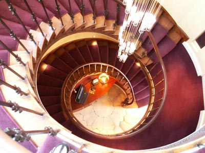 チッピング・カムデンで最も有名なコッツウォルズ・ホテルの中にある 螺旋階段。3階から階下をパチリ。初めてガイドブックでこの階段を見た時から、 是非実物を見たいと思っていた。場所はマーケット・ホール跡のすぐ近く。 宿泊者でない者がホテル内に入る時は、一言許可を得るのをお忘れなく!