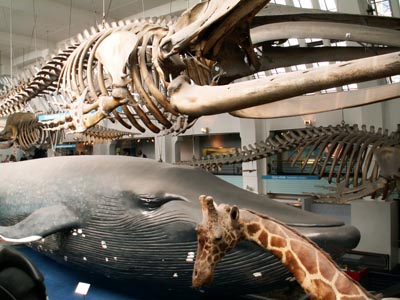 天井から吊り下げられているのは、各種クジラの骨格標本。写真手前に