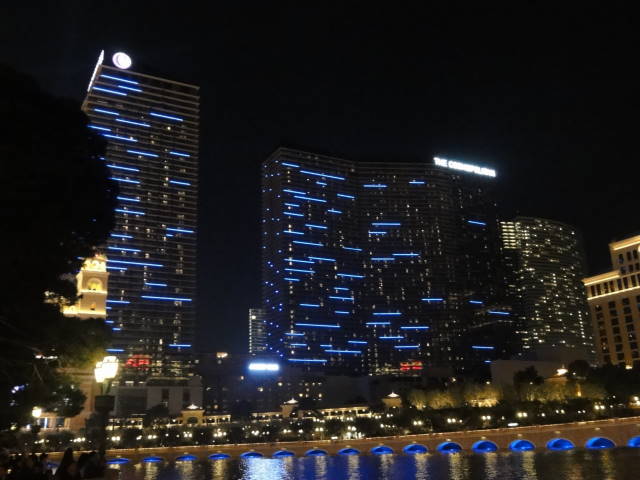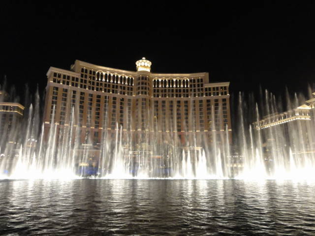 バスでストリップまで戻って、ベラージオの噴水ショーを見学。ベガスで