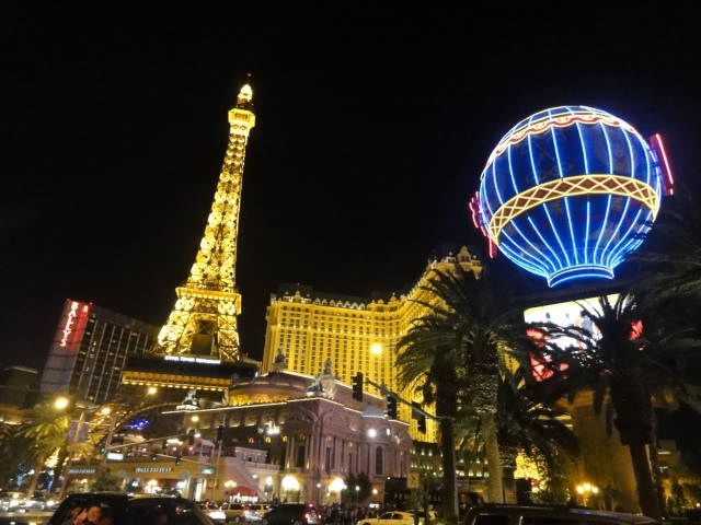 夜景を見ながら歩いてホテルへ。左からパリス(Paris)、
