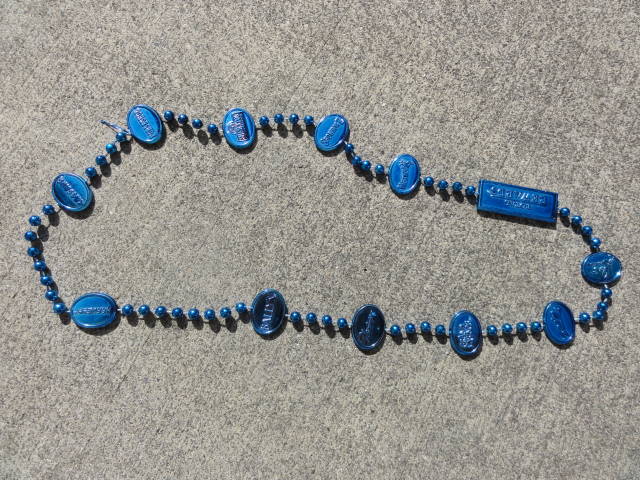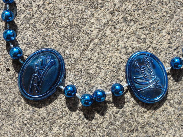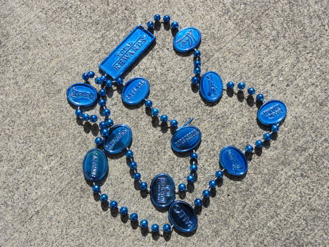 ショーの終盤に、フロートからおもちゃのネックレスがバラまかれます。