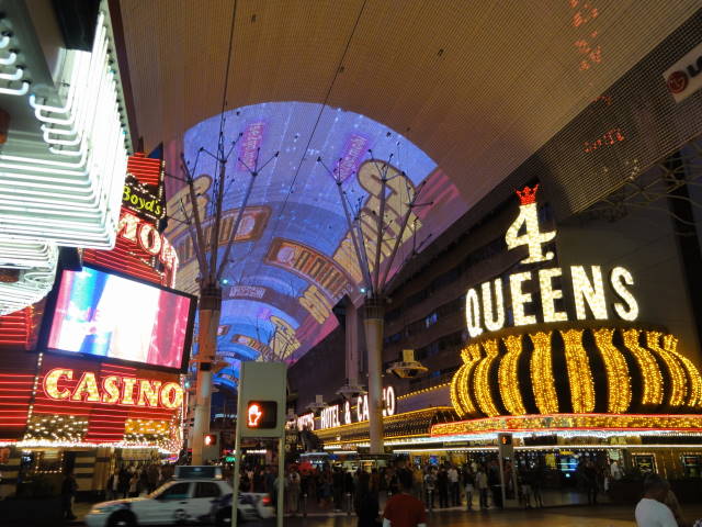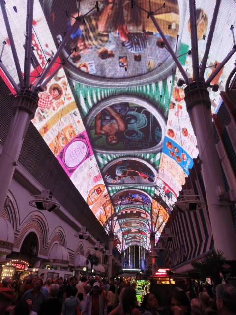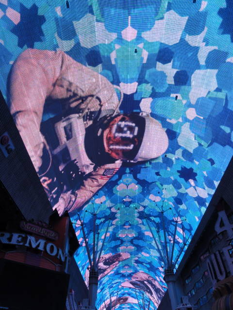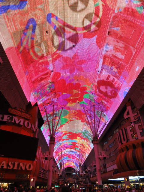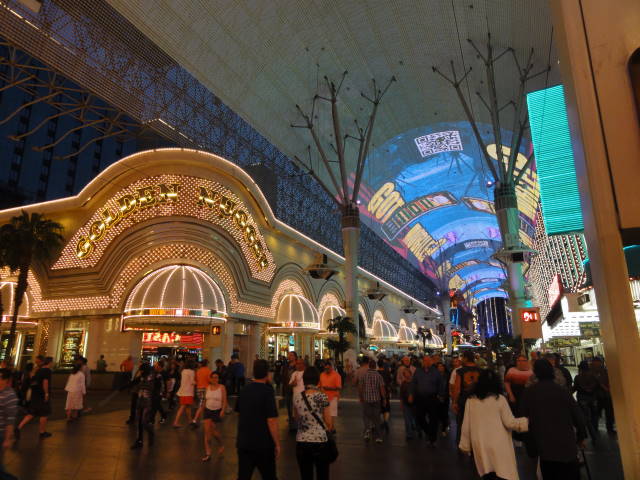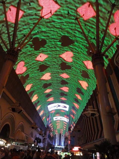 19:00からのフリーモントストリートエクスペリエンス (Fremont Street Experience)を見ようとバスでダウンタウンへ。18:30に 着いて調べたら、今日の第1回は20:00スタートだと分かりました。 そこでゴールデン・ナゲット(Golden Nugget)のポーカールームへ 行ったら、$2-4リミットは満席でウェイティングリストにも数人の名が。 結局、土産店やストリートパフォーマンス等を見ながら時間を潰しました。