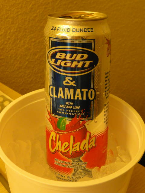 これはコンビニで買ったカクテルビール、バドライトの クラマトジュース割り。クラマトとは、クラム+トマトの造語で、 トマトジュースにクラム(ハマグリ/アサリ)の煮汁エキスを混ぜ、 ペッパーソース、調味料、酸味料、香辛料などで仕立てたジュース。 これがメッチャ旨! でも日本ではレッドアイ(ビールの トマトジュース割り)も一般的ではないから、発売しても売れないかな。