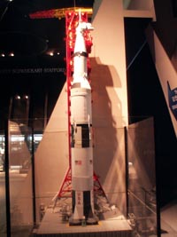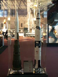 中:サターンVロケットの1/34スケール模型。実際の高さは110m。