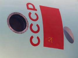 左:旧ソ連のアレクセイ・レオノフによる人類初のEVAを再現した実物大模型。
