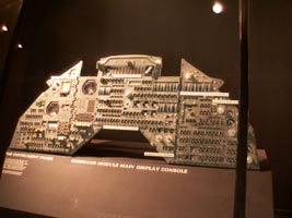右:アポロ11号コマンドモジュール・ディスプレイ。シュミレーターで実際に使われたもの。