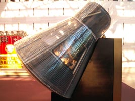 アメリカ初の有人軌道飛行に成功した宇宙船。直径1.8m、高さ2.7mの
