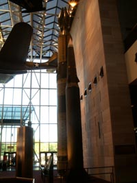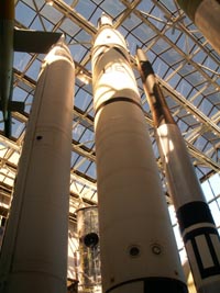 右から2番目:ミニットマンミサイル(左)とスコットロケットの実物。