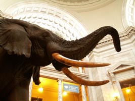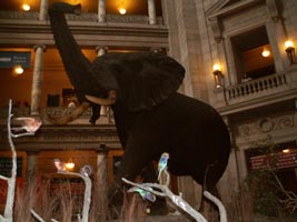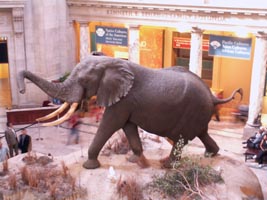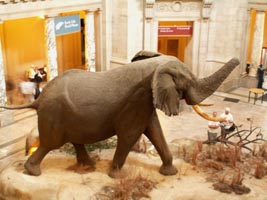 アフリカ象の剥製。体長3.9m、体重は8t。
