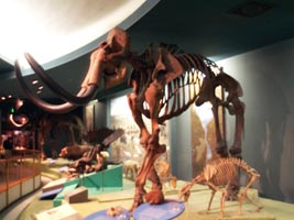 マストドンとマンモスの化石コーナー。