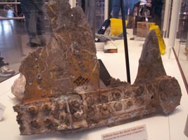 左:9・11同時多発テロの時、世界貿易センタービルから回収された飛行機の破片。