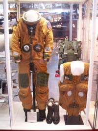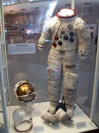 右:アポロ15号の船長デイビット・スコットが月面で着ていた宇宙服。
