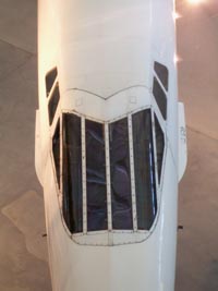 前後に動いて空気吸入面積を変える。エンジンナセルにも各種の吸入口が開いており、