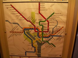 地下鉄の路線図。各線は色別に分けられ、「RED LINE」とか「BLUE LINE」などと