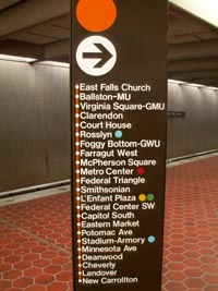 ワシントンの地下鉄はとっても判り易い! 各ホームには到着する電車の行き先を