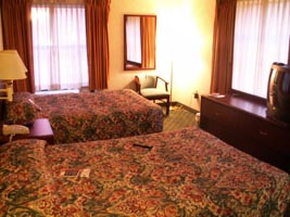 部屋の中はこんな感じ。シングルを予約したのに、部屋はなぜかツイン。まあ料金は