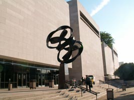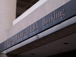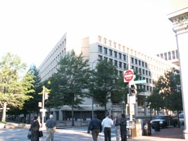 | 8時にホテルを出発。まずは歩いてFBI本部ビルへ。と言っても、外観は普通のビル。 中へは入れない(以前あった内部見学ツアーは、少なくとも2006年までは中止)し、 あのFBIのマークもどこにもない。 |