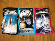 唯一買ってきた土産がこれ。航空宇宙博物館でNo.1の人気を誇る「宇宙食」。 早い話がフリーズド・ドライ食品。食感は発泡スチロールを食べている感じ (極貧学生時代、私は空腹に耐えかねて、本当に発泡スチロールを食べたことがある!)で、 良く噛むとチョコレートやイチゴの味がする。
